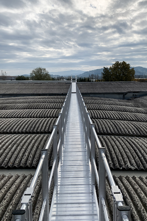 Dalla progettazione all’installazione, documentiamo ogni sistema: passerelle, scale, parapetti, binari anticaduta e linee vita.