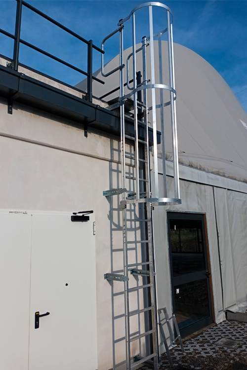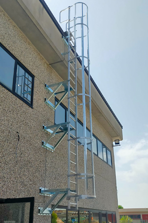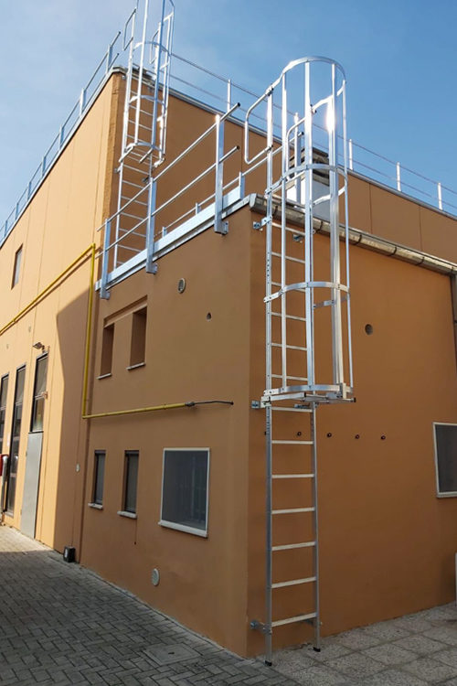 Le scale a gabbia SDSTEP rappresentano la scelta ideale per l’accesso verticale in completa sicurezza e conformi alle normative più recenti come la UNI 11962:2024. Realizzate in alluminio, leggere ma robuste, risultano installabili su qualunque tipo di facciata, grazie alla vasta disponibilità di staffe di fissaggio.